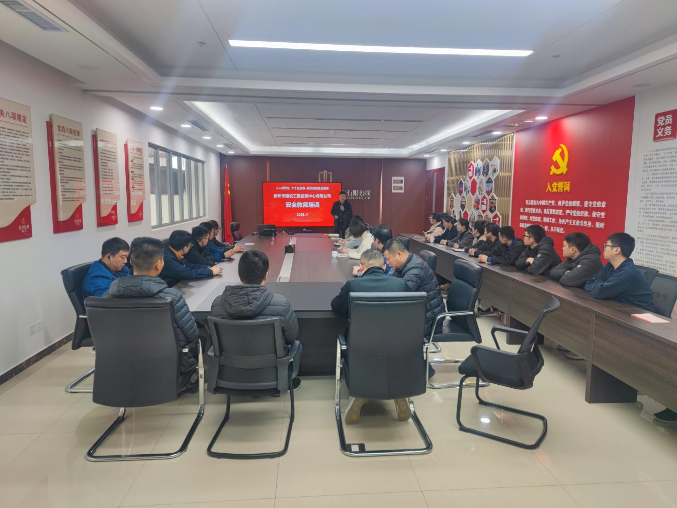 2025年6月,徐建檢測公司圍繞全國第24個“安全生產(chǎn)月”人人講安全、個個會應(yīng)急——查找身邊安全隱患主題,開展了一系列豐富多彩且卓有成效的活動,全方位提升員工安全意識,筑牢企業(yè)安全防線?;顒右潦?,公司領(lǐng)導(dǎo)班子高度重視,6月18日專題學(xué)習(xí)習(xí)近平總書記關(guān)于安全生產(chǎn)的重要論述和指示批示精神。公司黨總支書記、董事長、安委會主任袁磊針對當(dāng)前安全生產(chǎn)工作進(jìn)行了全面部署,強(qiáng)調(diào)要實(shí)現(xiàn)安全管理從“被動應(yīng)對”到“主動